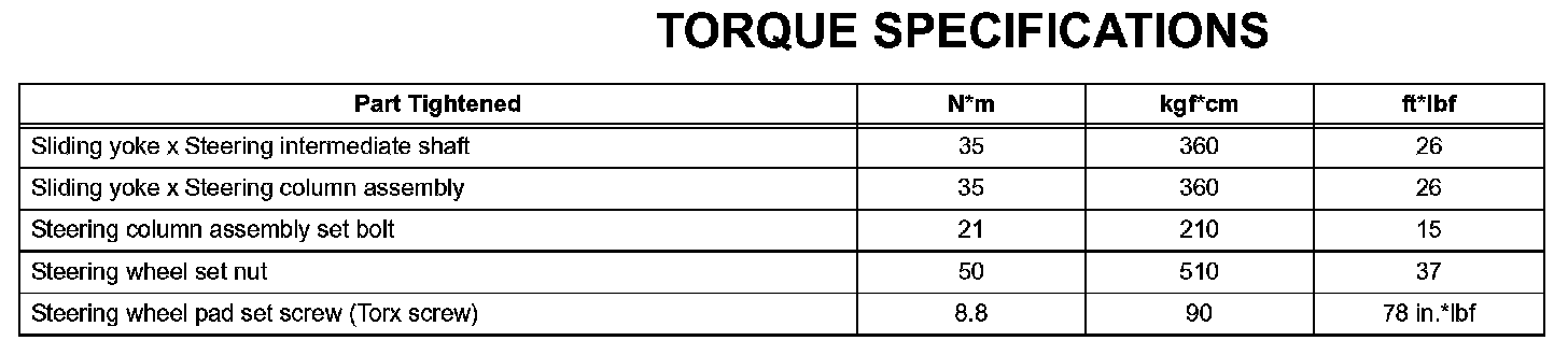 Steering Column - Torque Specifications:
