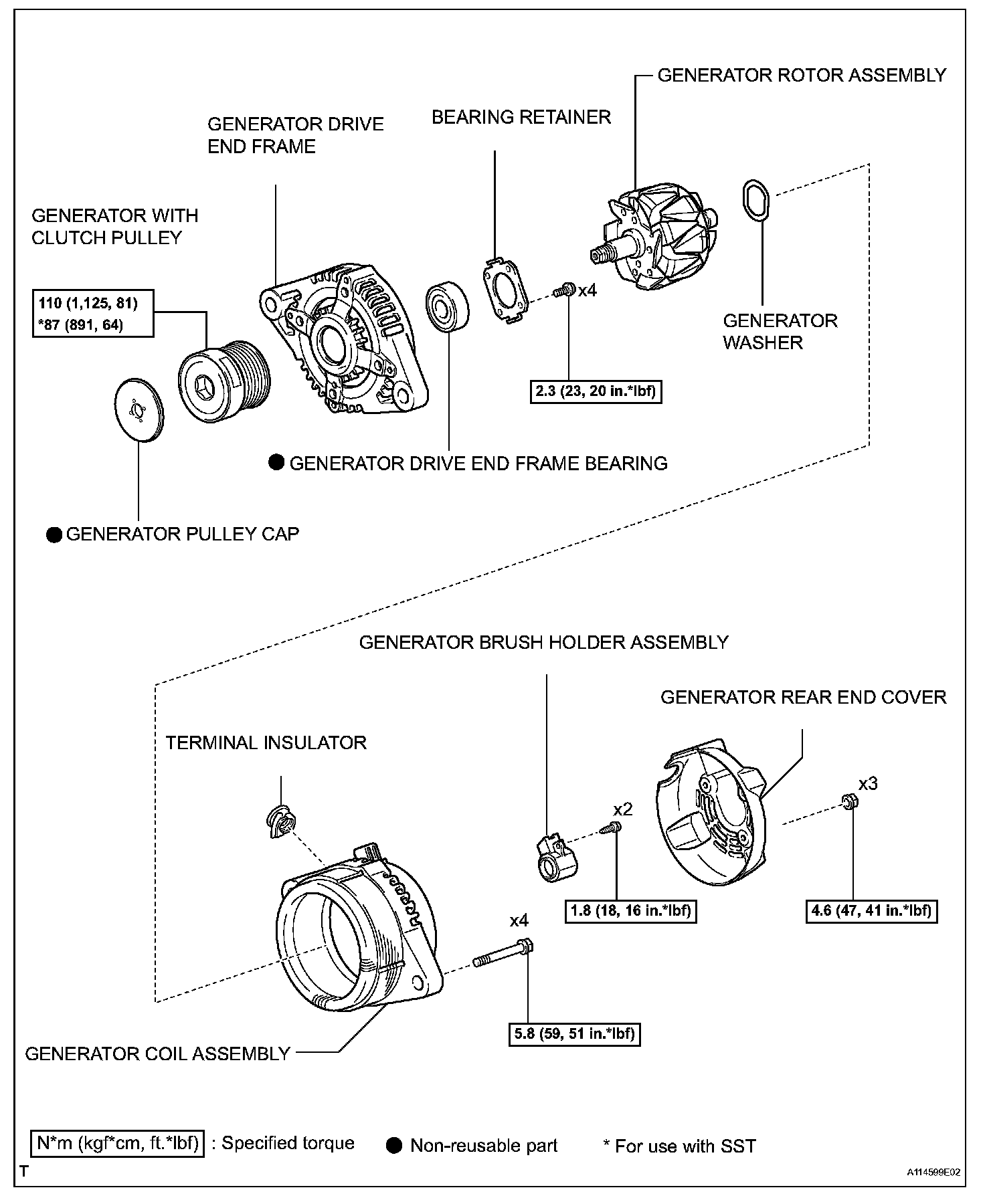Torque: 5.8 N.m (59 kgf.cm, 51 in.lbf)