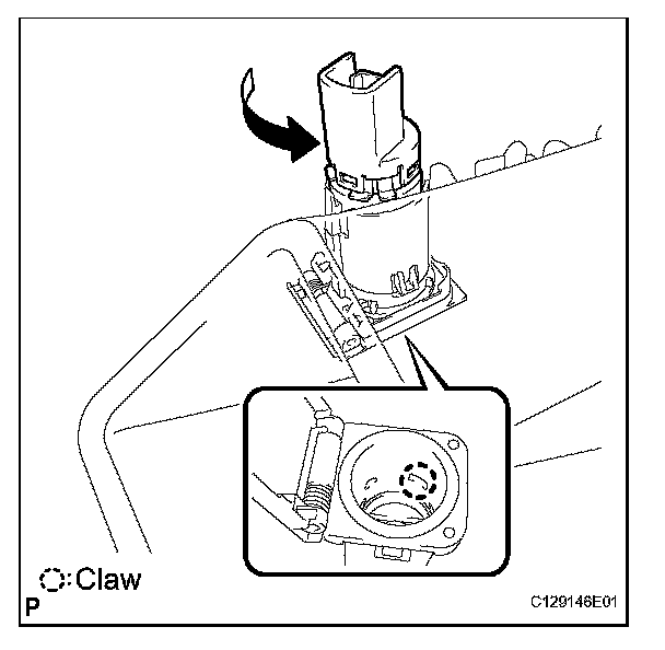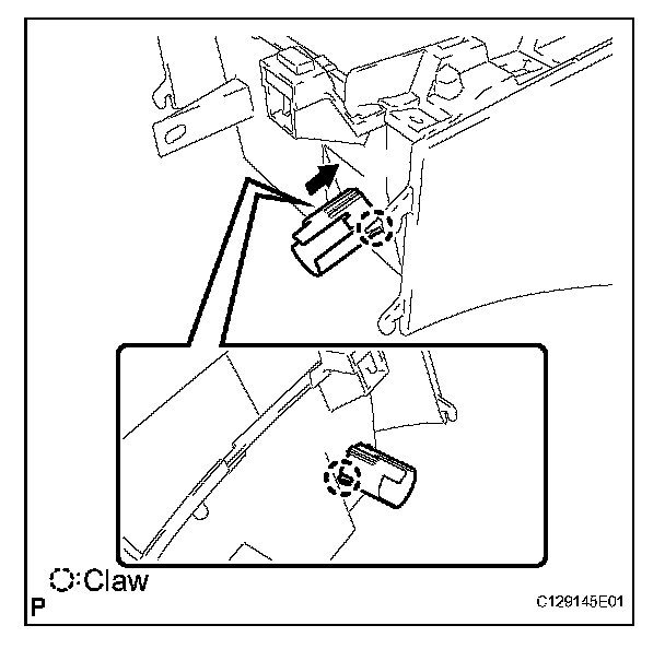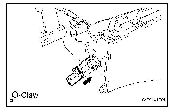 1. Disengage the claw and remove the power outlet socket assembly as shown in the illustration.