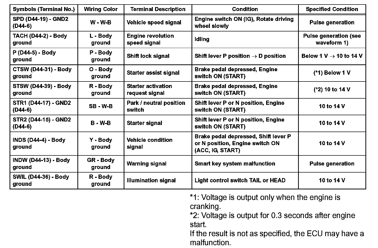Terminals Of Control Module/Pinouts - Steering Lock ECU: