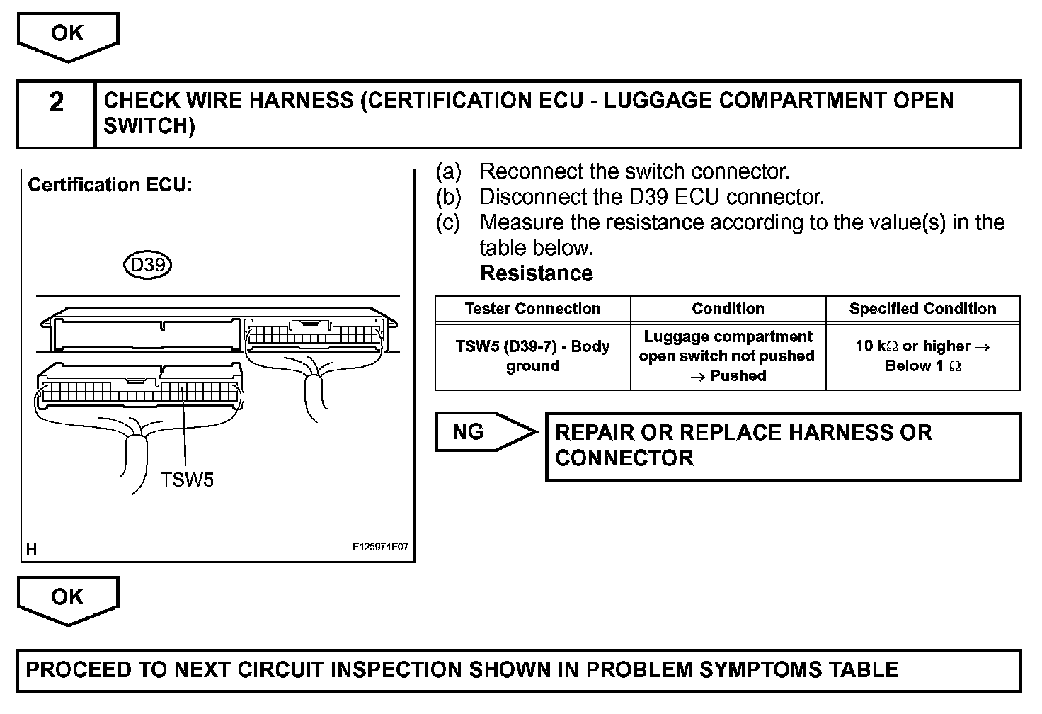 If the certification ECU detects that the luggage compartment open switch is pressed when the driver is carrying the key or when the key is locked in the luggage compartment door, the certification ECU sends a luggage compartment door open motor drive request signal to the body ECU.