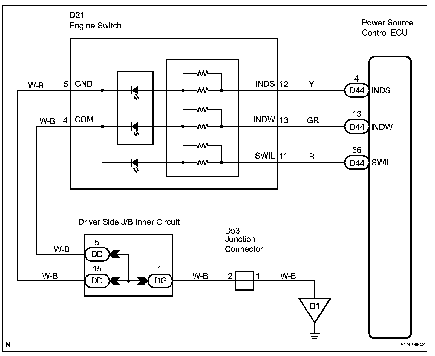 Engine start conditions or system malfunctions can be checked by the status of the engine switch indicator light.