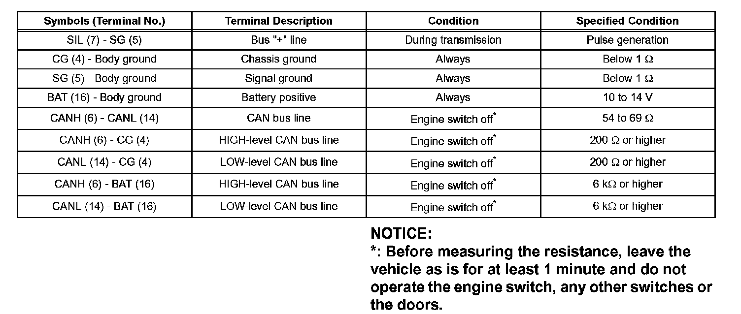 If the result is not as specified, the DLC3 may have a malfunction. Repair or replace the harness and connector.