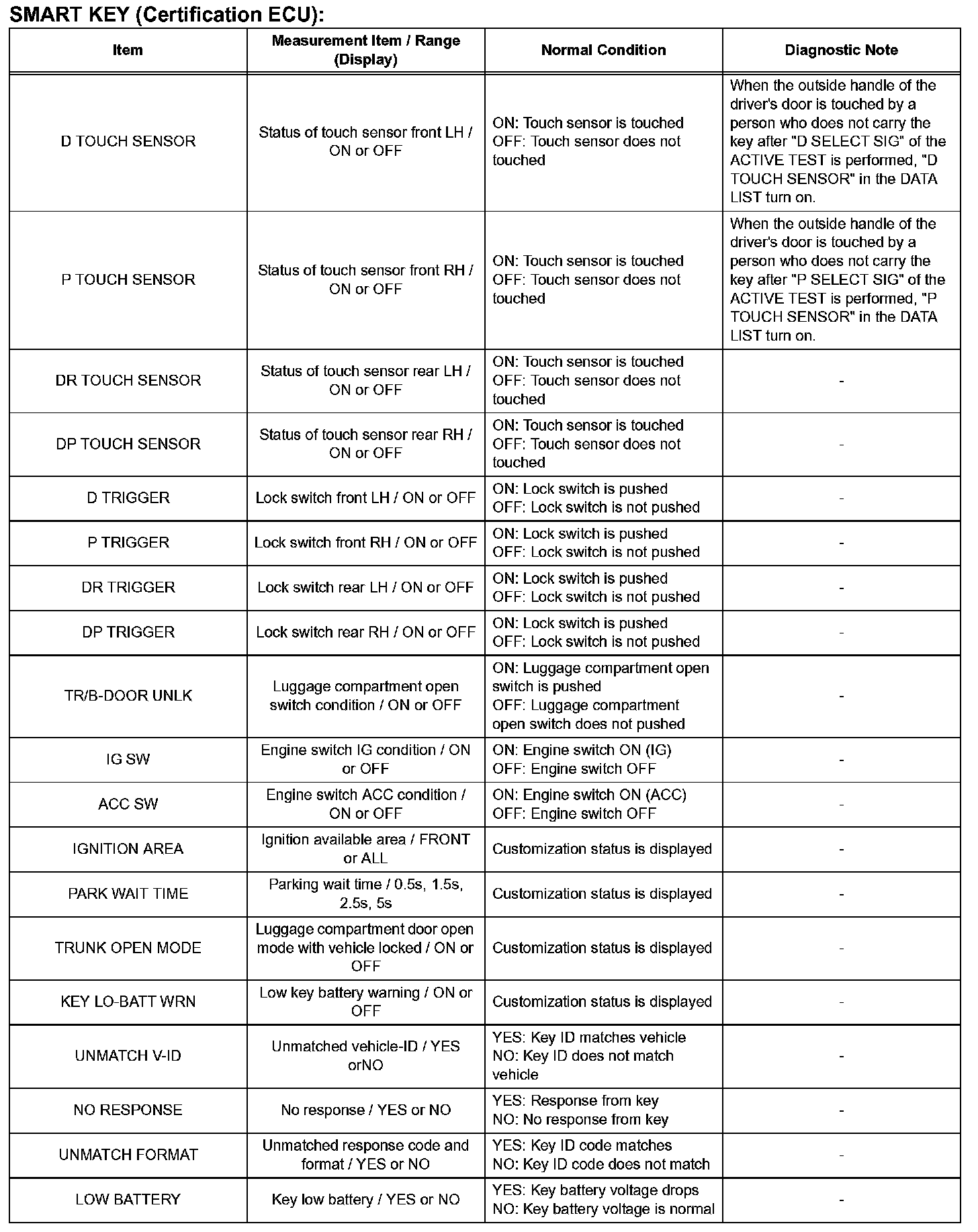 DATA LISTHINT: By accessing the DATA LIST displayed on the intelligent tester, you can perform such functions as reading the values of switches and sensors without removing any parts. Reading the DATA LIST is the first step of troubleshooting and is one method to shorten labor time.