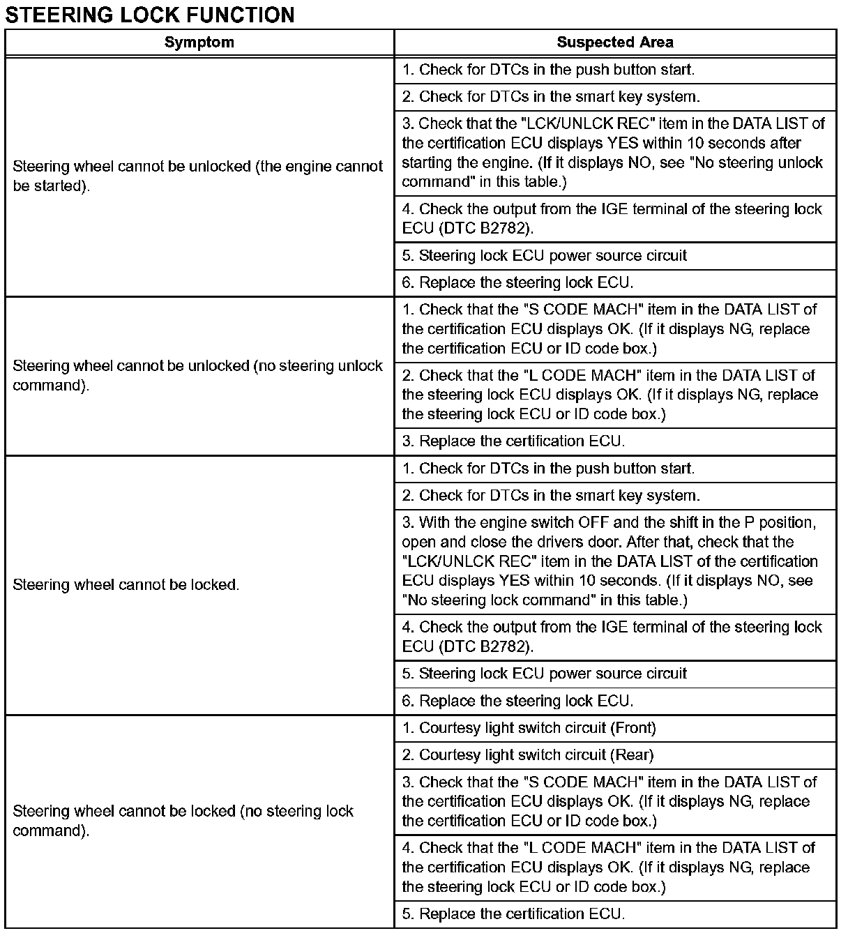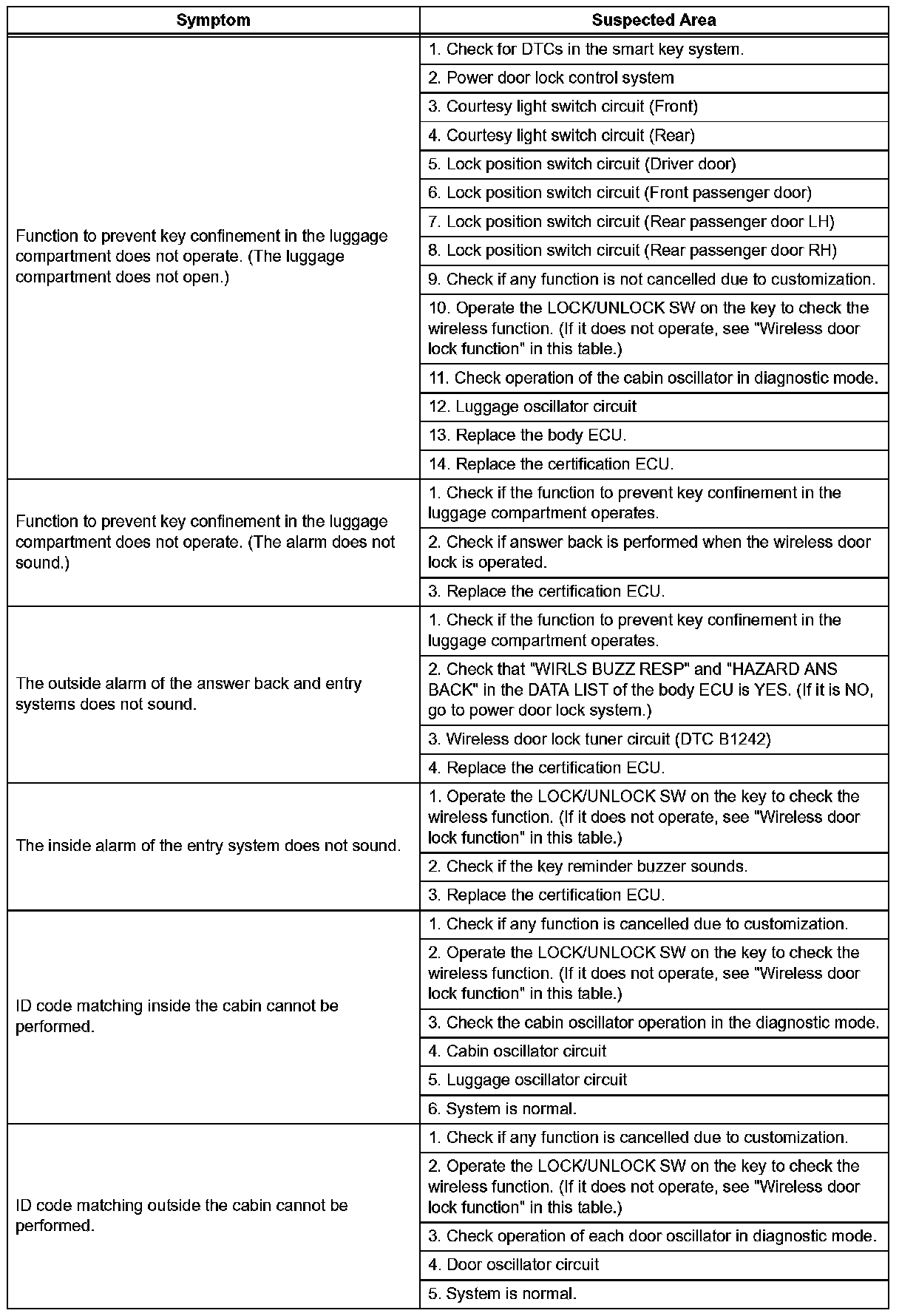 Problem Symptoms Table-Entry Lock/Unlock Function (Part 2):