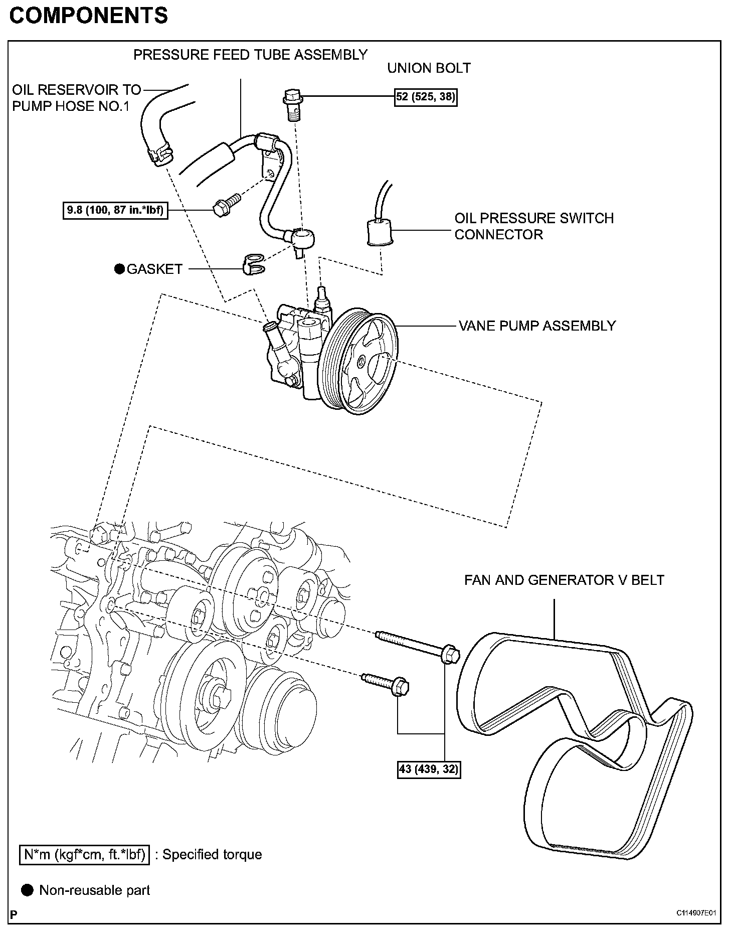 If the union seat in the pressure port union is severely damaged, it may cause fluid leakage. In that case, replace the vane pump assembly.