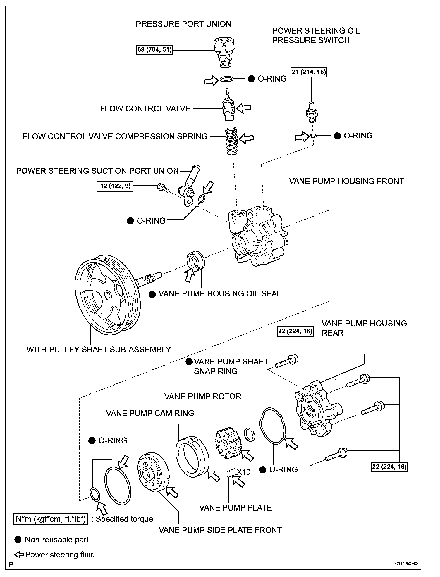 (c) Coat the 10 vane pump plates with power steering fluid.