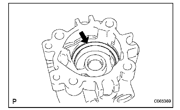 NOTICE: Make sure that the vane pump housing oil seal is installed in the correct direction as shown in the illustration.