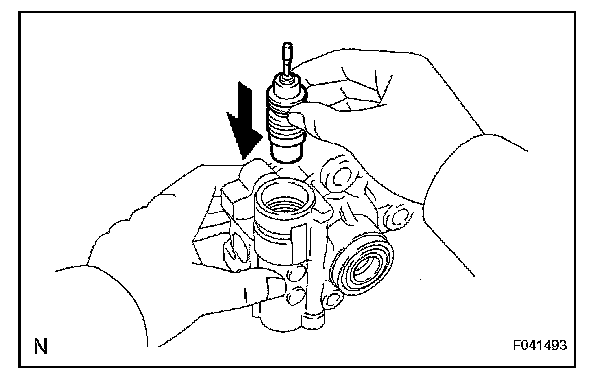 (a) Coat the flow control valve with power steering fluid and check that it falls smoothly into the flow control valve hole under its own weight.
