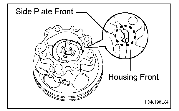 (c) Align the dent of the vane pump side plate front with that of the vane pump housing front, and install the vane pump side plate front to the vane pump housing front.