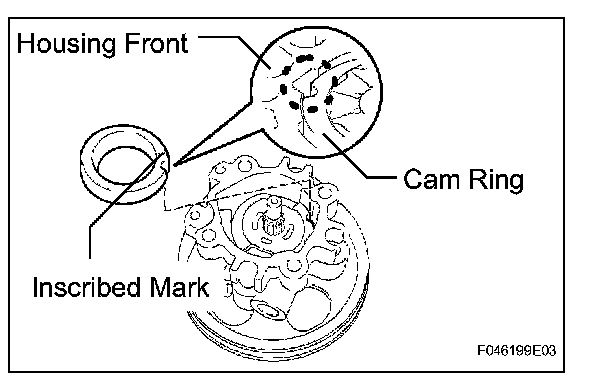 (a) Align the dent of the vane pump cam ring with that of the vane pump side plate front, and install the vane pump cam ring with the inscribed mark facing upward.