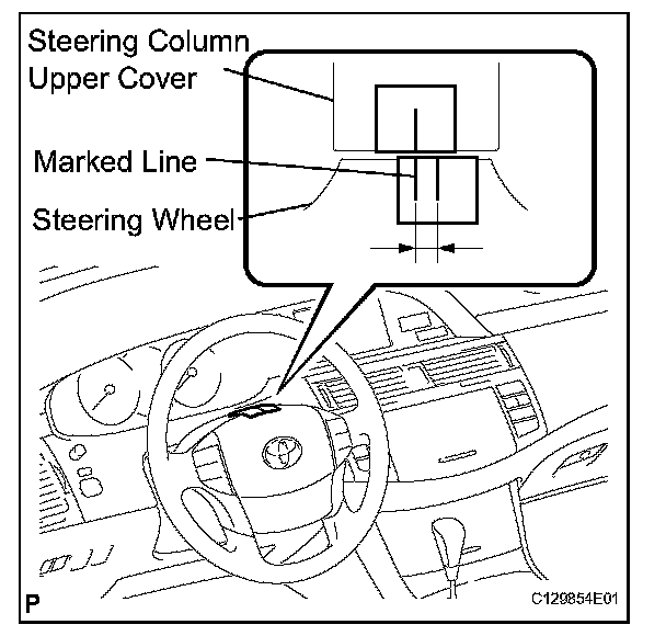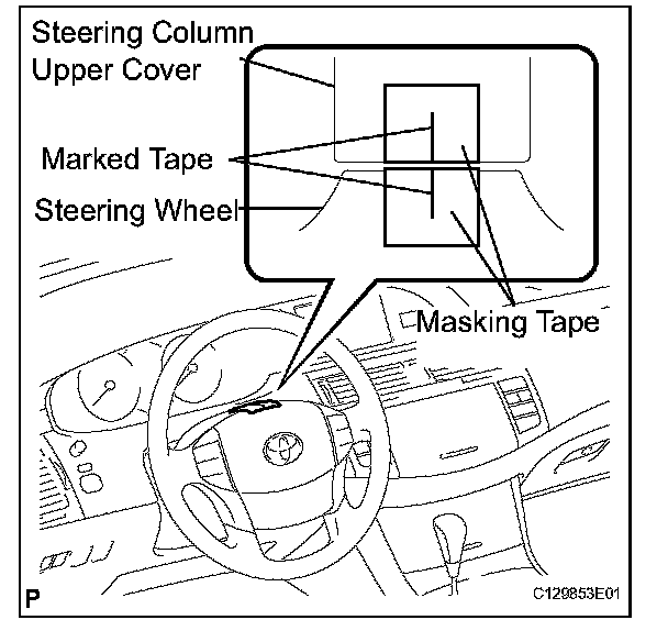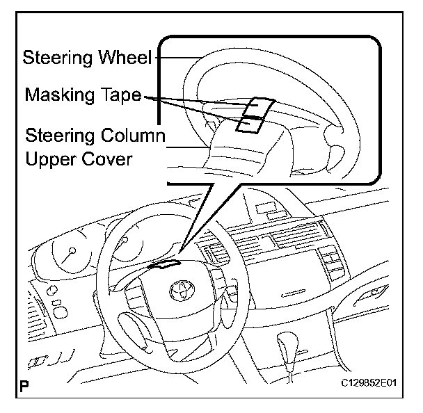 (1) Apply masking tape on the top center of the steering wheel and steering column upper cover.
