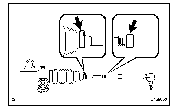 (1) Draw a line on the RH and LH tie rod ends and rack ends respectively where it can be easily seen.