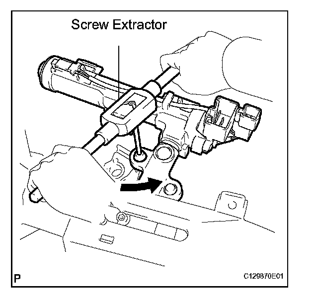(c) Using a screw extractor, remove the 2 bolts and steering lock actuator assembly from the steering column assembly.