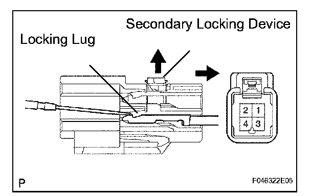 (d) Using a screwdriver, disengage the locking lug of terminals 3 and 4, and pull the terminals out from the rear side of the un-lock warning switch assembly connector.