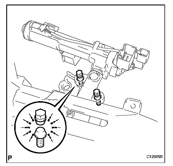 (a) Temporarily install the steering lock actuator assembly with 2 new tapered-head bolts.