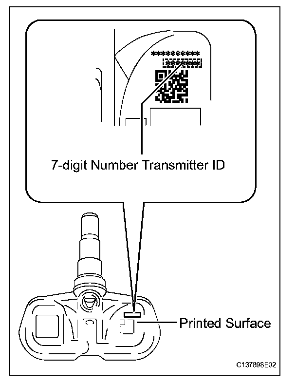 ^ If installing a new tire pressure warning valve and transmitter, write down the ID number before installation.