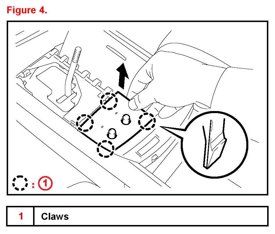 3. Remove the console box hole cover by disengaging the 4 claws (without seat heater).