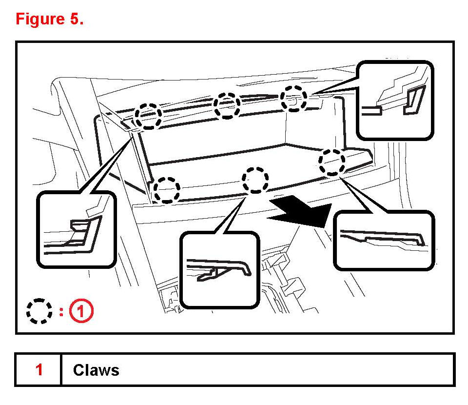 A. Disengage the 6 claws and remove the console upper box (if equipped).
