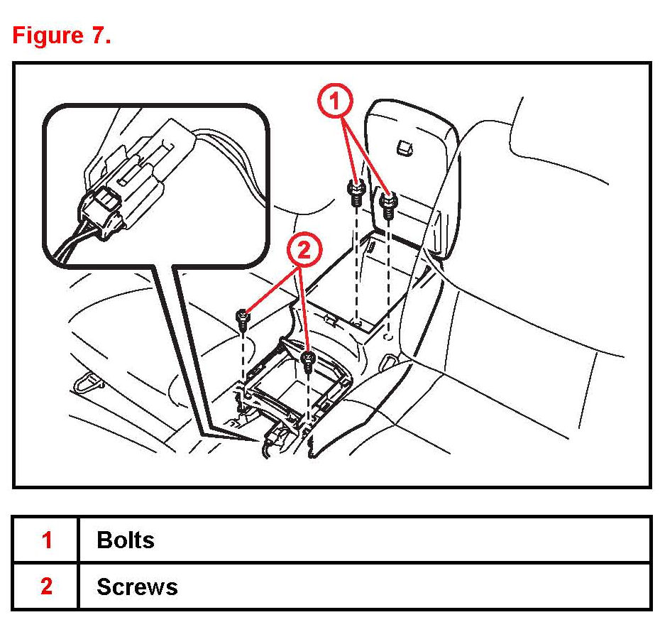 B. Remove the 2 bolts and 2 screws then the console box assembly