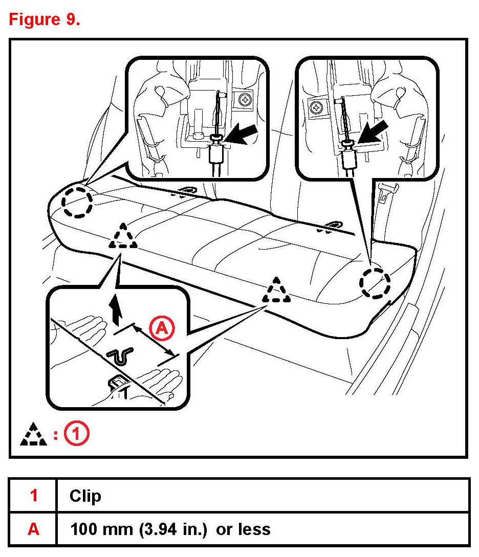 11. Remove the rear seat cushion assembly.