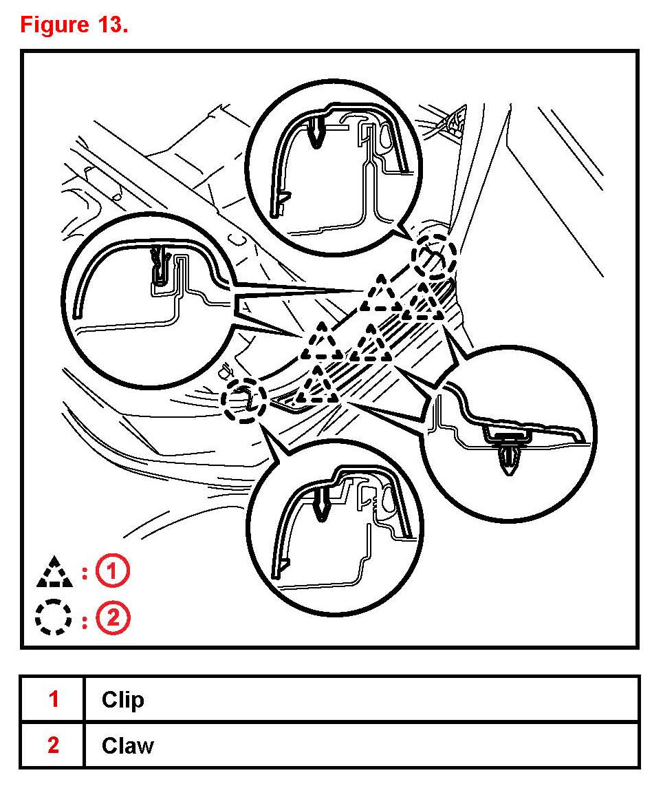 14. Disengage the 4 clips and 7 claws and remove the front door scuff plate RH.