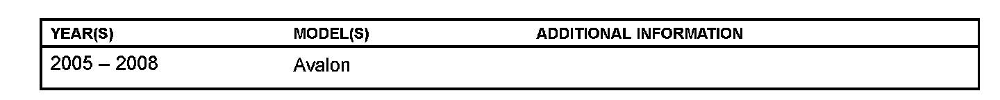 ^ Applicability has been updated to include 2008 model year Avalon vehicles.