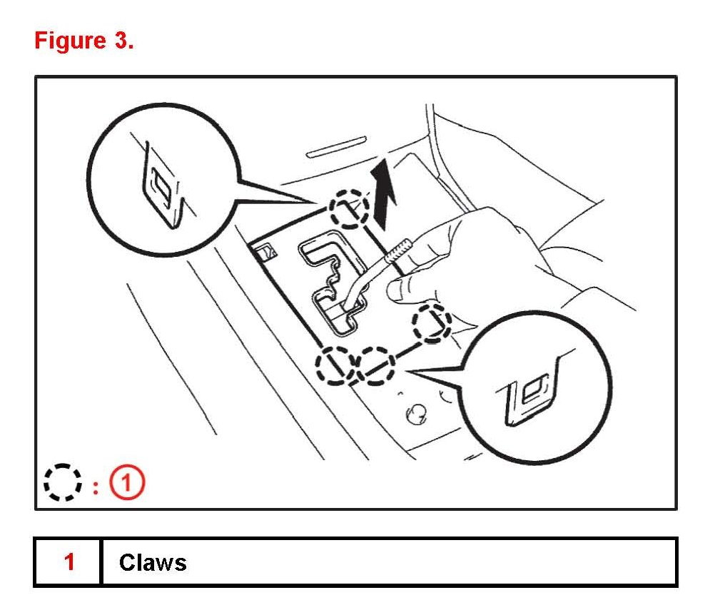 C. For Seat Heater System: Remove the seat heater switch by disengaging the 4 claws.