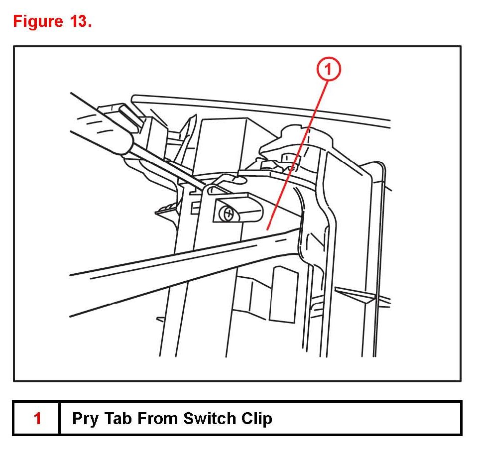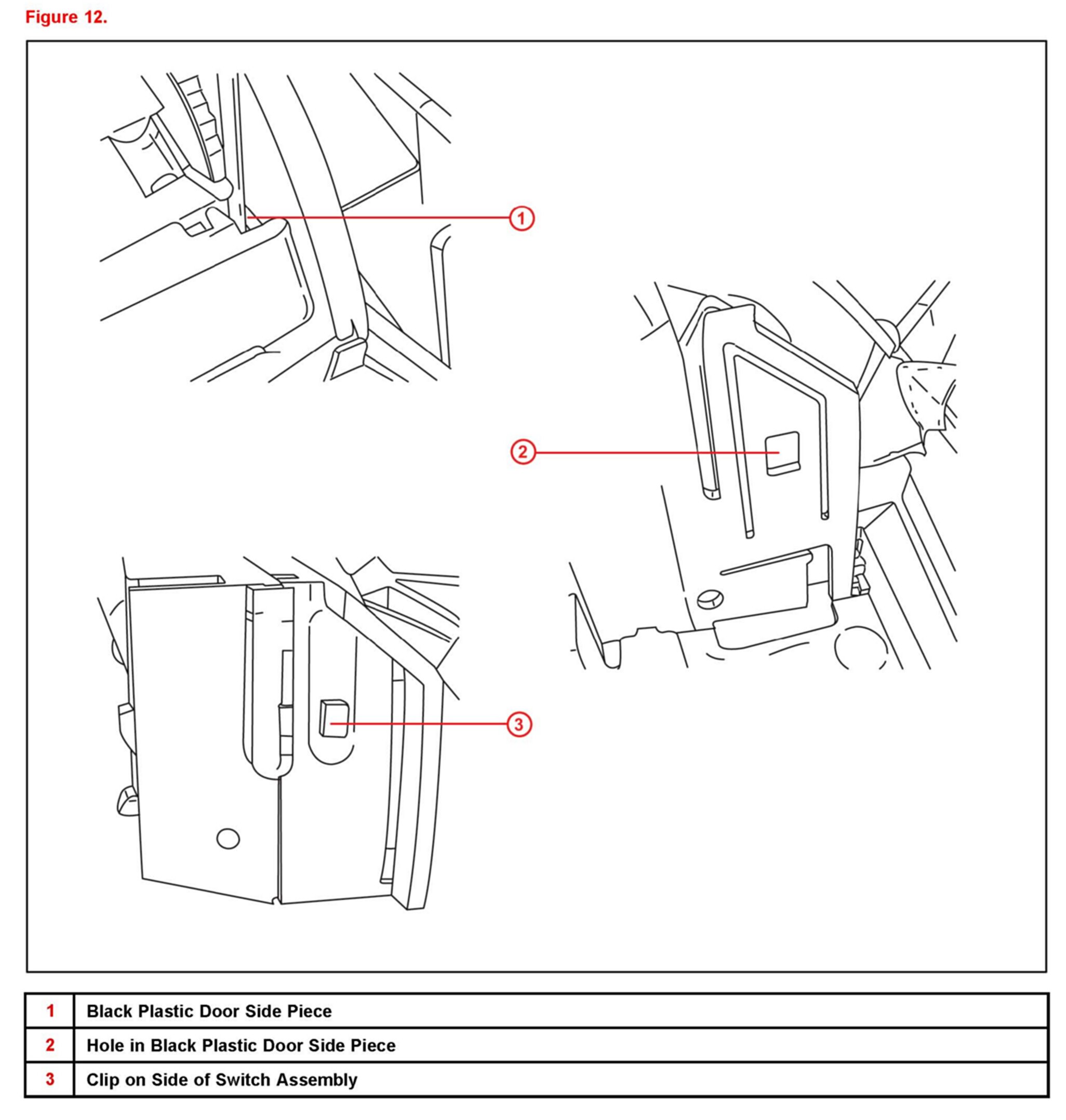5. Pry the black plastic door side piece away from the switch to release the clip from the hole.