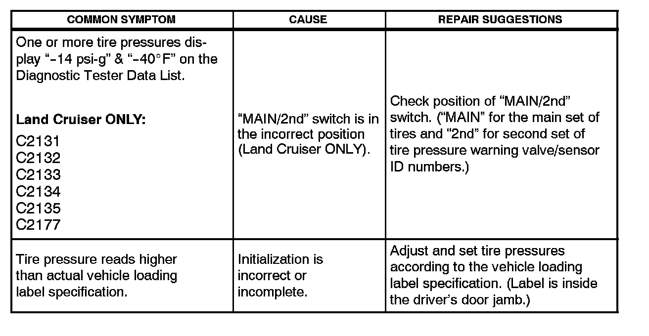 ^ "MAIN/2nd" switch in the UP position The TPWS ECU is programmed to read the main set of tire pressure warning valve/sensor ID numbers.