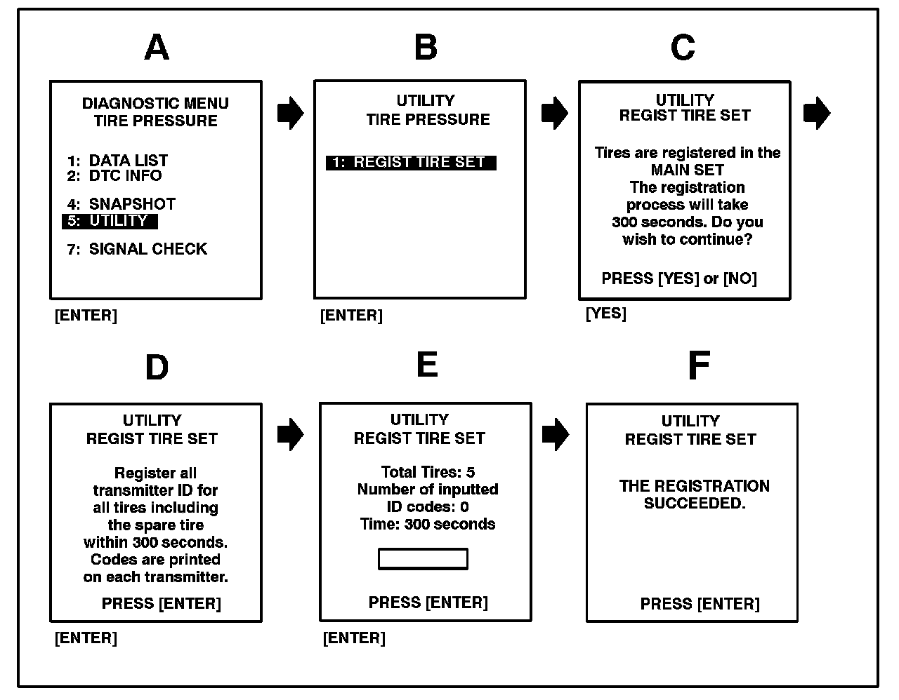 Registration of tire pressure warning valve/sensor ID numbers:
