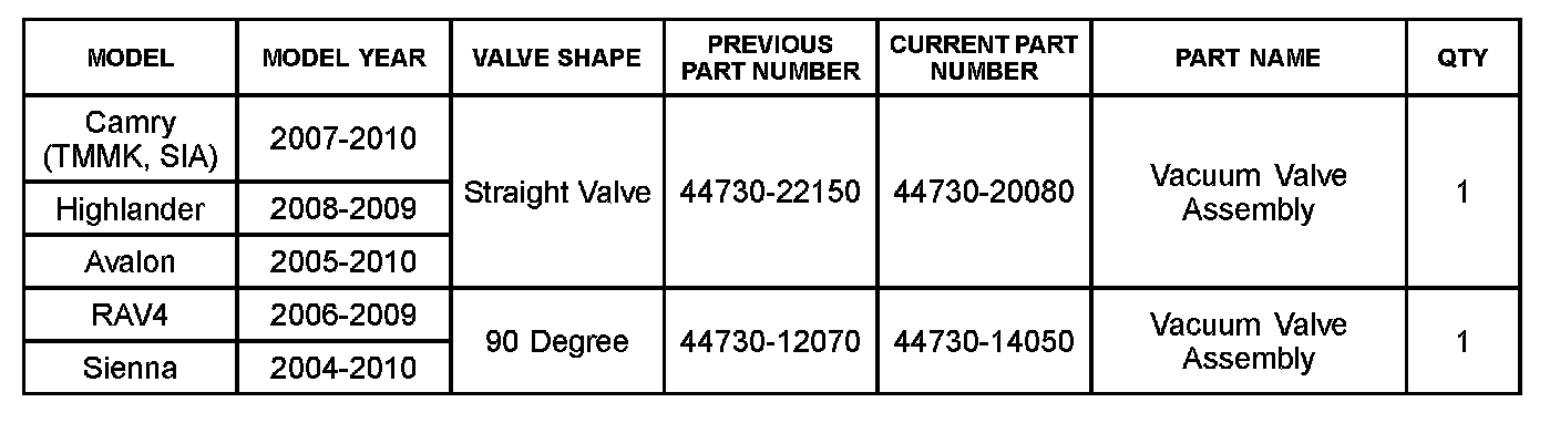 Some Toyota vehicles may exhibit a rattle or buzz type noise coming from the driver's instrument panel area. The noise can be duplicated when lightly accelerating and then decelerating, or when depressing the brake pedal with the shift lever in Park and then releasing brake pedal. An updated vacuum check valve is now available to reduce this noise.