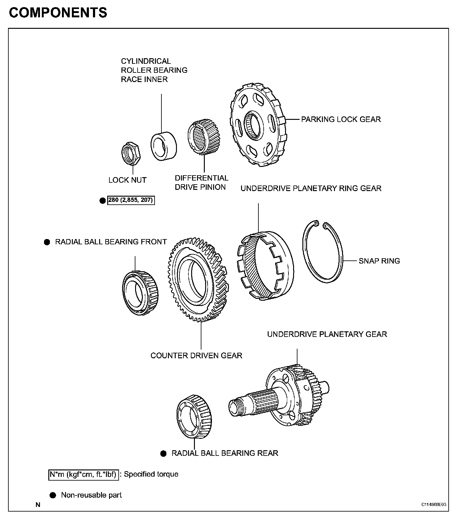 Torque: 280 N*m (2,885 kgf*cm, 207 ft.*lbf)