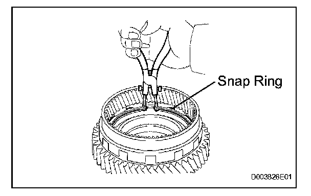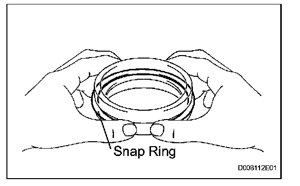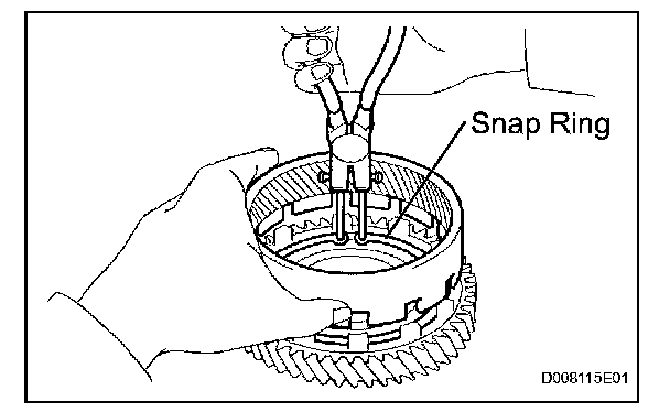 (e) Using a snap ring pliers, install the snap ring.