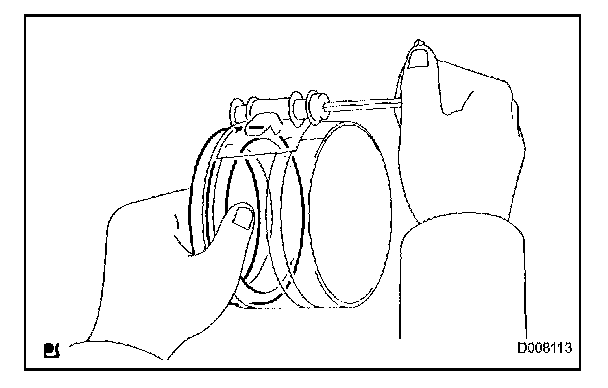(b) Using a piston ring compressor, squeeze the snap ring.