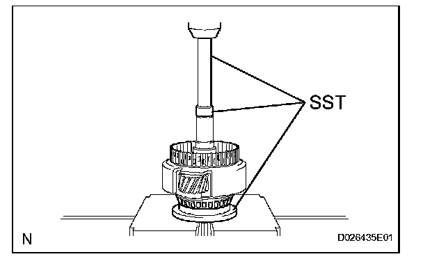 (a) Using SST and a press, press the cylindrical roller bearing race inner.