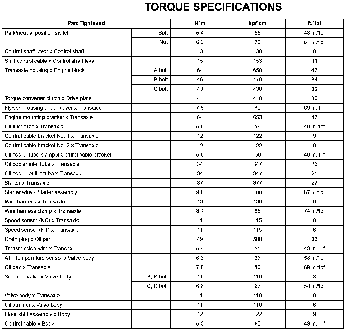 Automatic Transaxle - Torque Specifications: