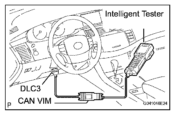 (1) Connect the intelligent tester to the Controller Area Network Vehicle Interface Module (CAN VIM). Then connect the CAN VIM to the Data Link Connector 3 (DLC3).
