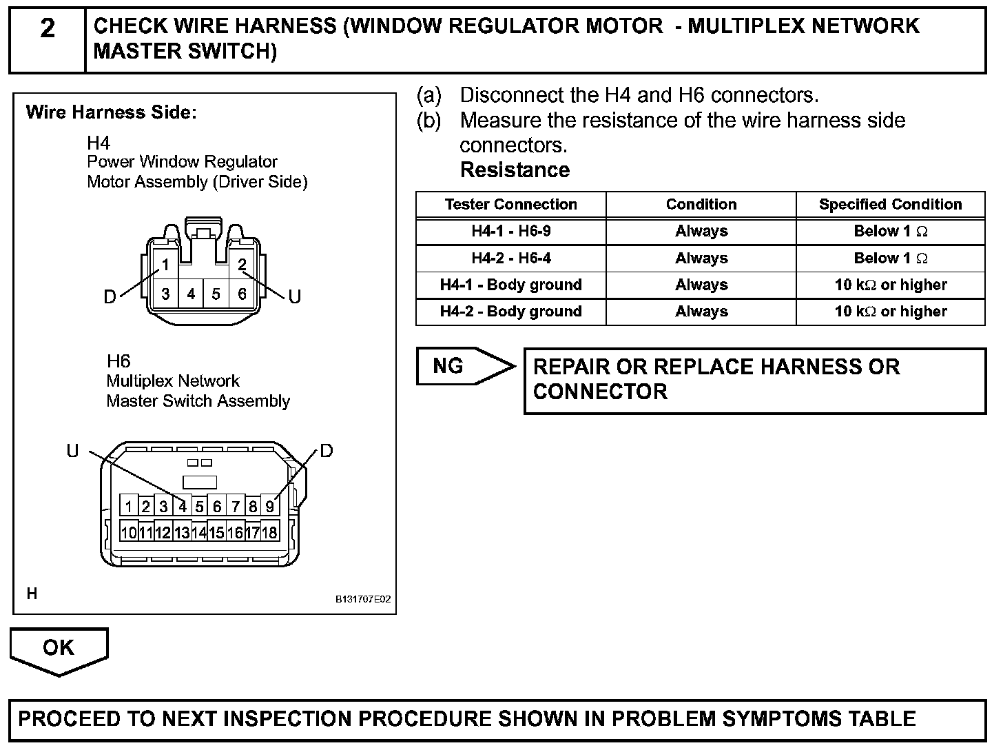 This circuit transmits signal from the multiplex network master switch assembly to power window regulator motor assembly (Driver side).