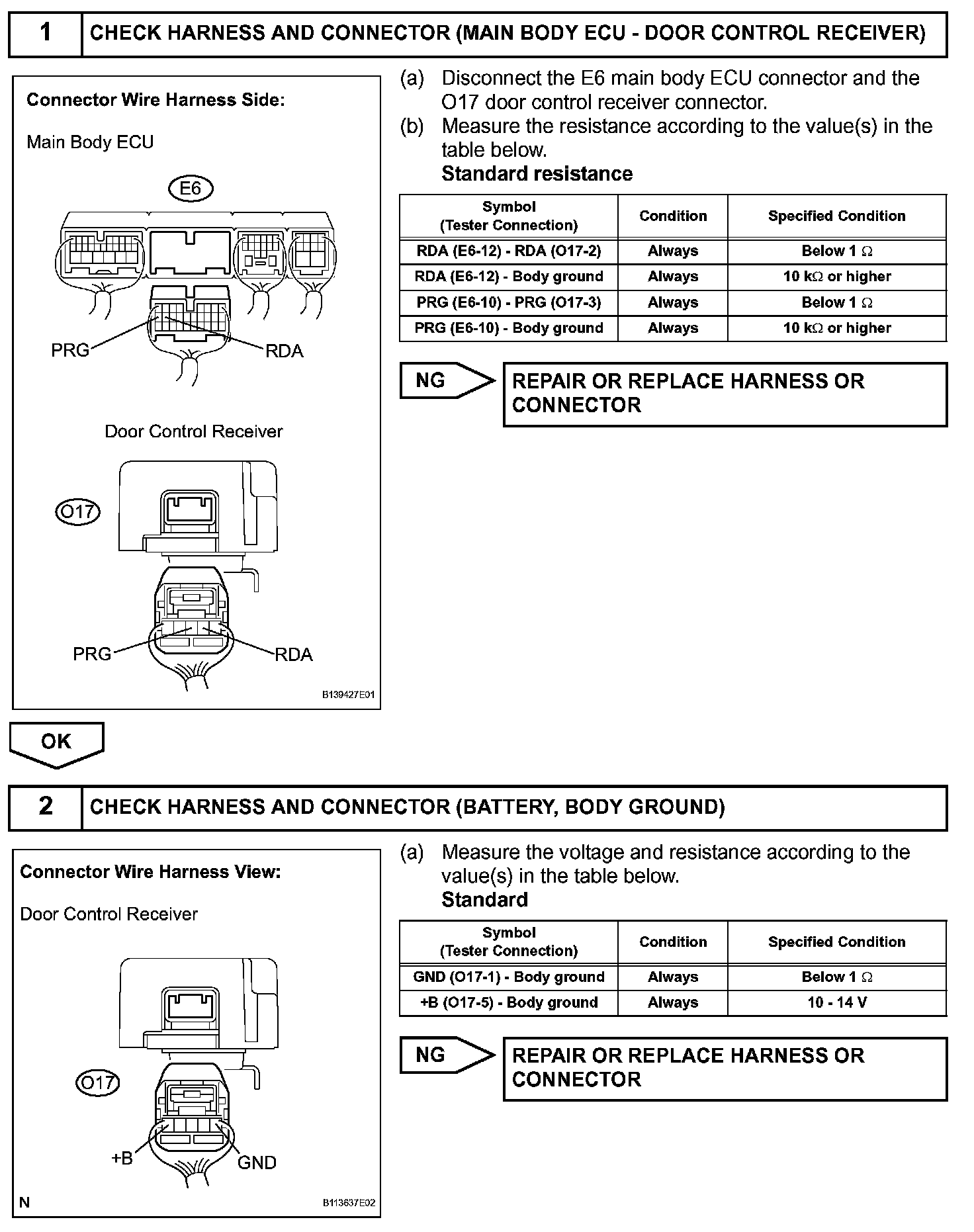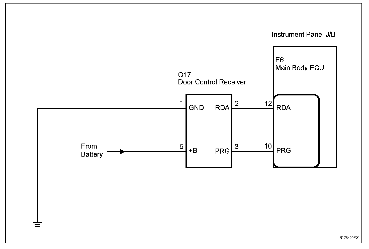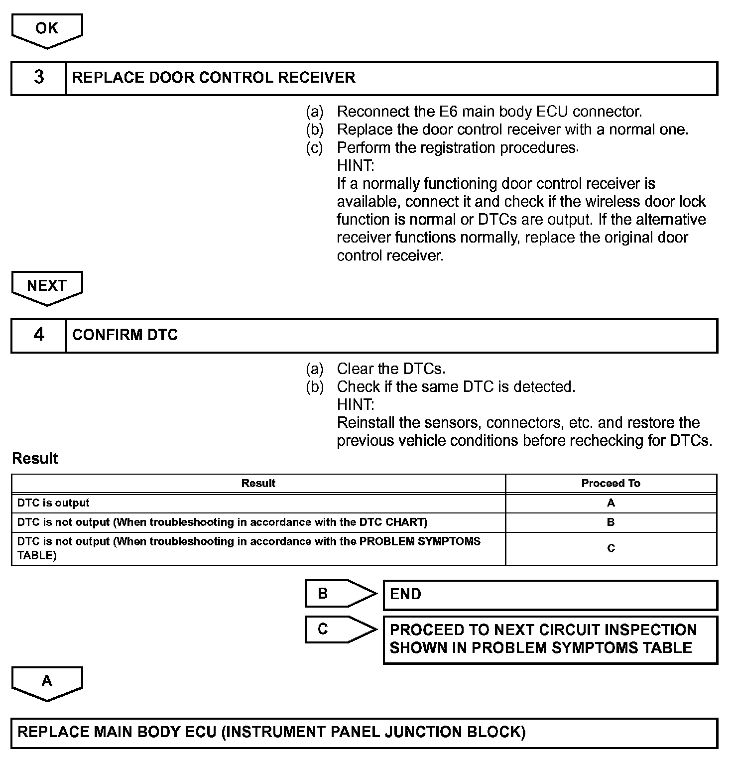 The door control receiver receives signals from the transmitter and sends these signals to the main body ECU.