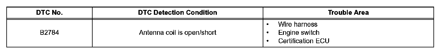 DTC B2784 Antenna Coil Open / ShortDESCRIPTION