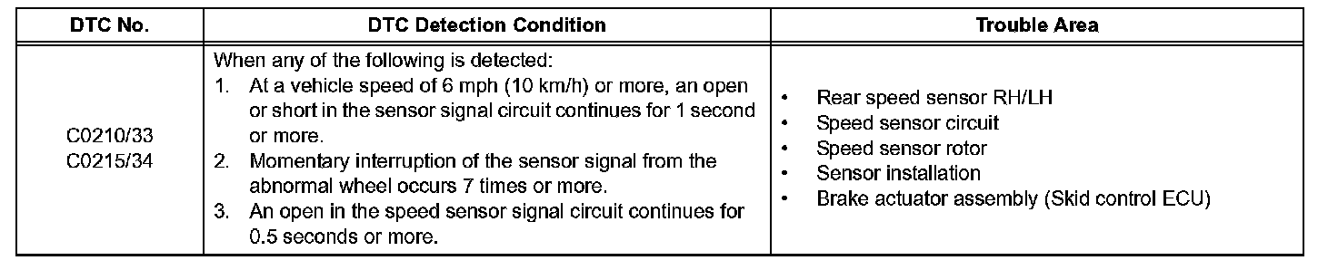 DTC C0215/34 Rear Speed Sensor LH CircuitDESCRIPTION