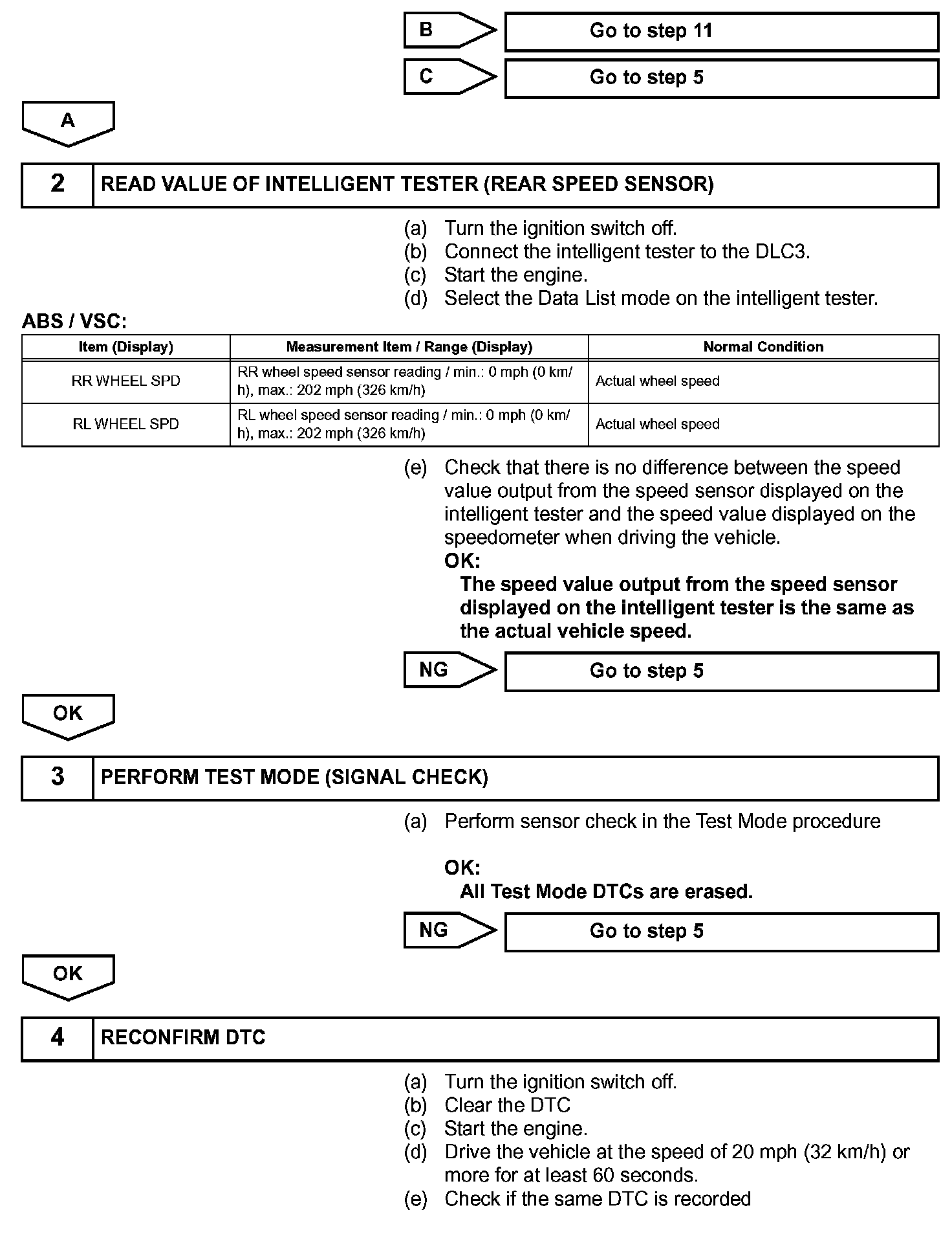 DTCs C1273/73 and C1274/74 can be deleted when the speed sensor sends a wheel speed signal or the Test Mode ends. DTCs C1273/73 and C1274/74 are output only in the Test Mode.