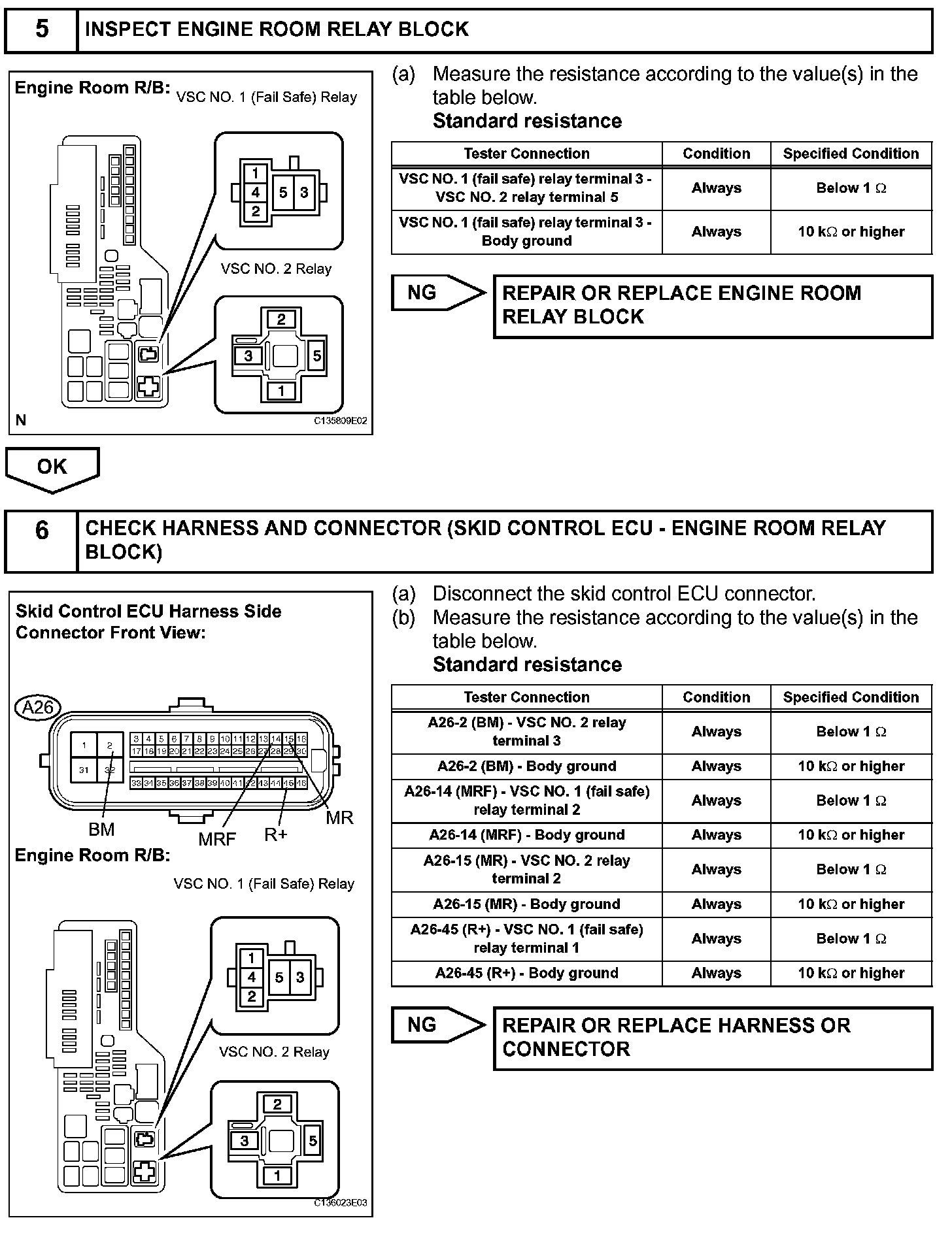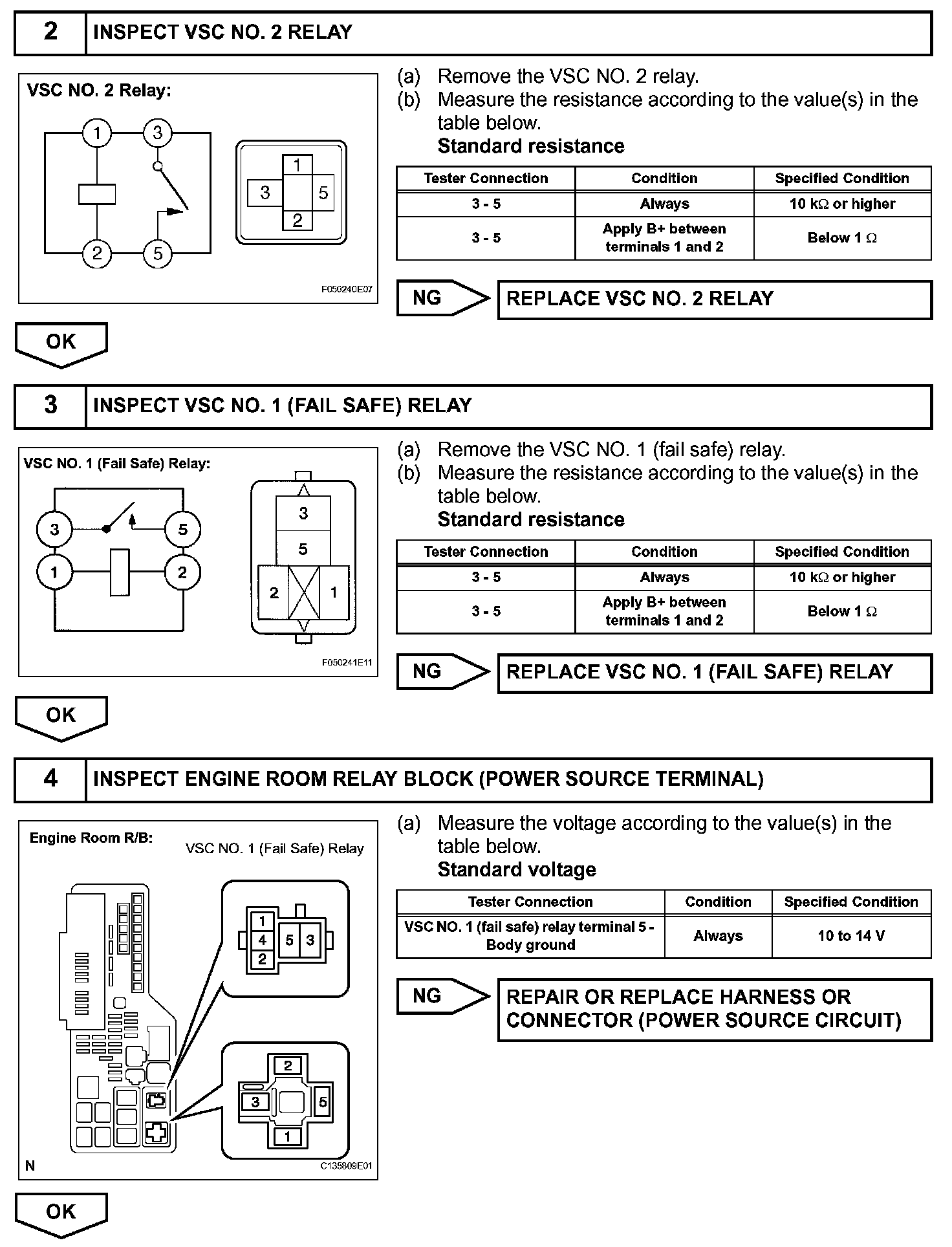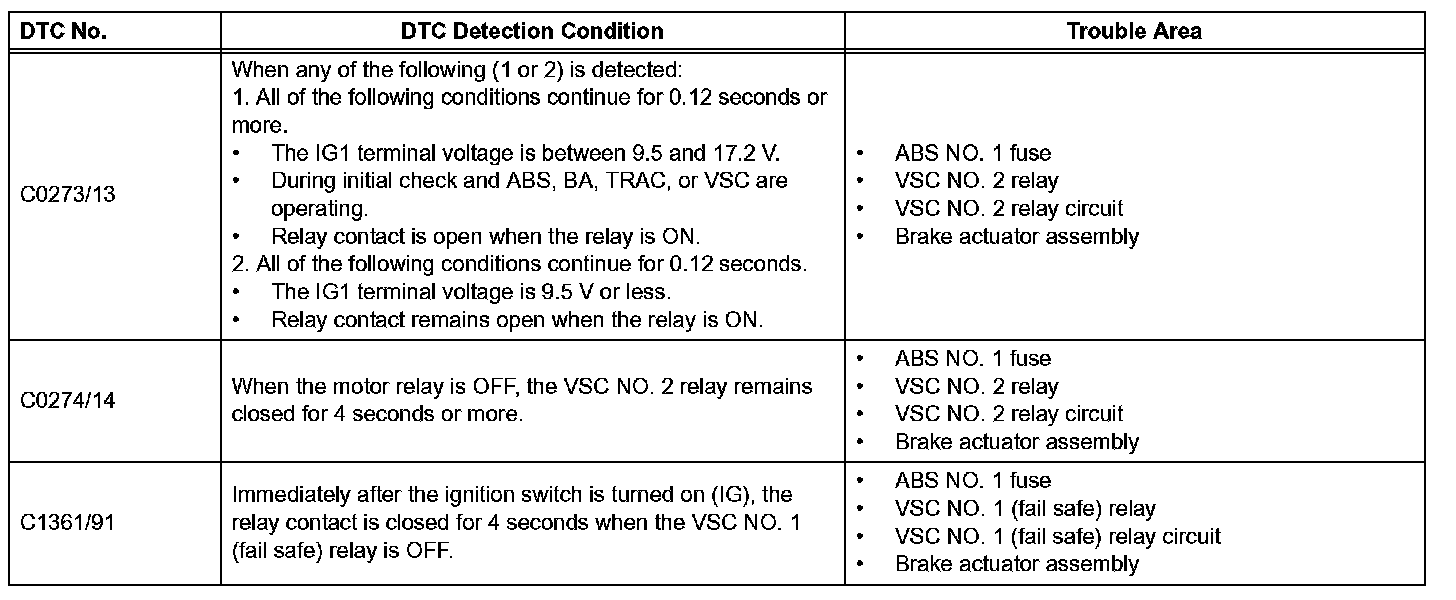 If a DTC of the motor line is stored, the VSC NO. 1 (fail safe) relay cuts off the power supply to the VSC NO. 2 relay and performs fail safe.