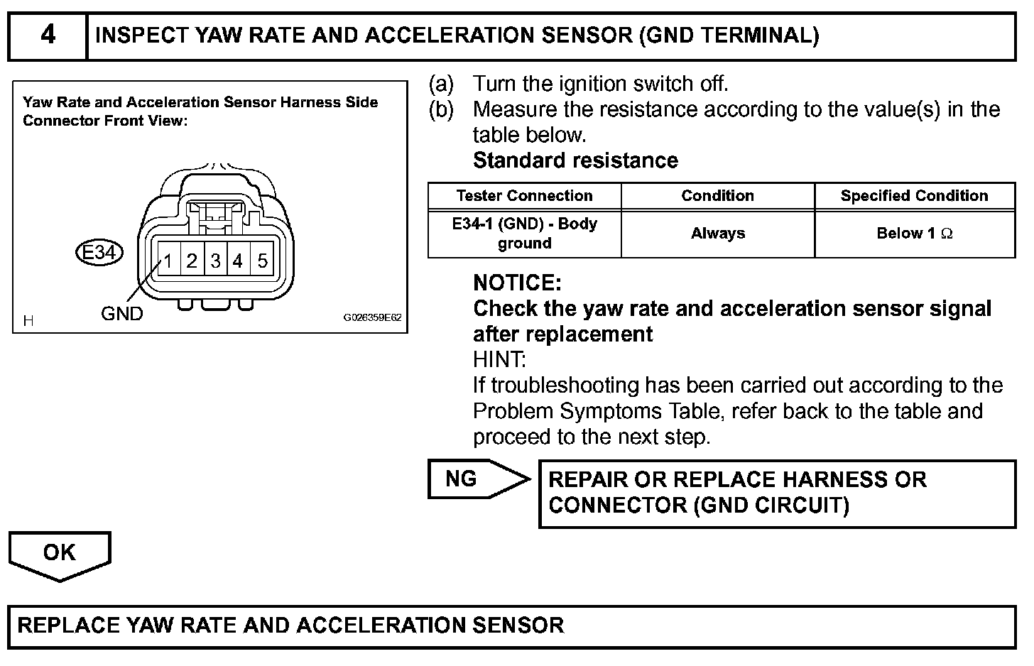 NOTE: When replacing the yaw rate and acceleration sensor, perform zero point calibration. Calibration