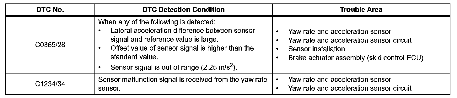 DTC C1234/34 Yaw Rate Sensor MalfunctionDESCRIPTION