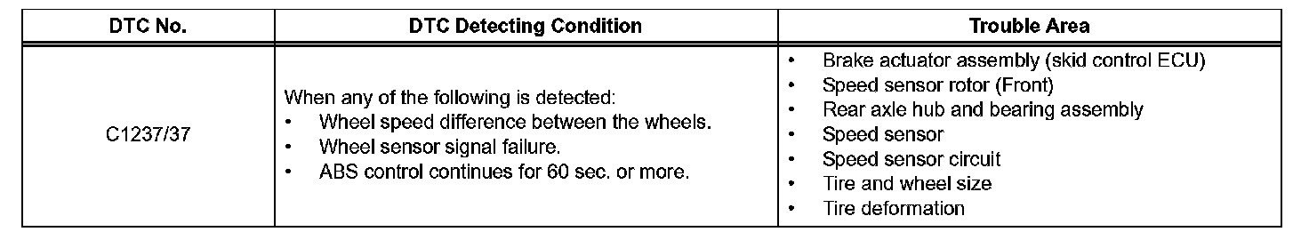 DTC C1237/37 Speed Sensor Rotor FaultyDESCRIPTION