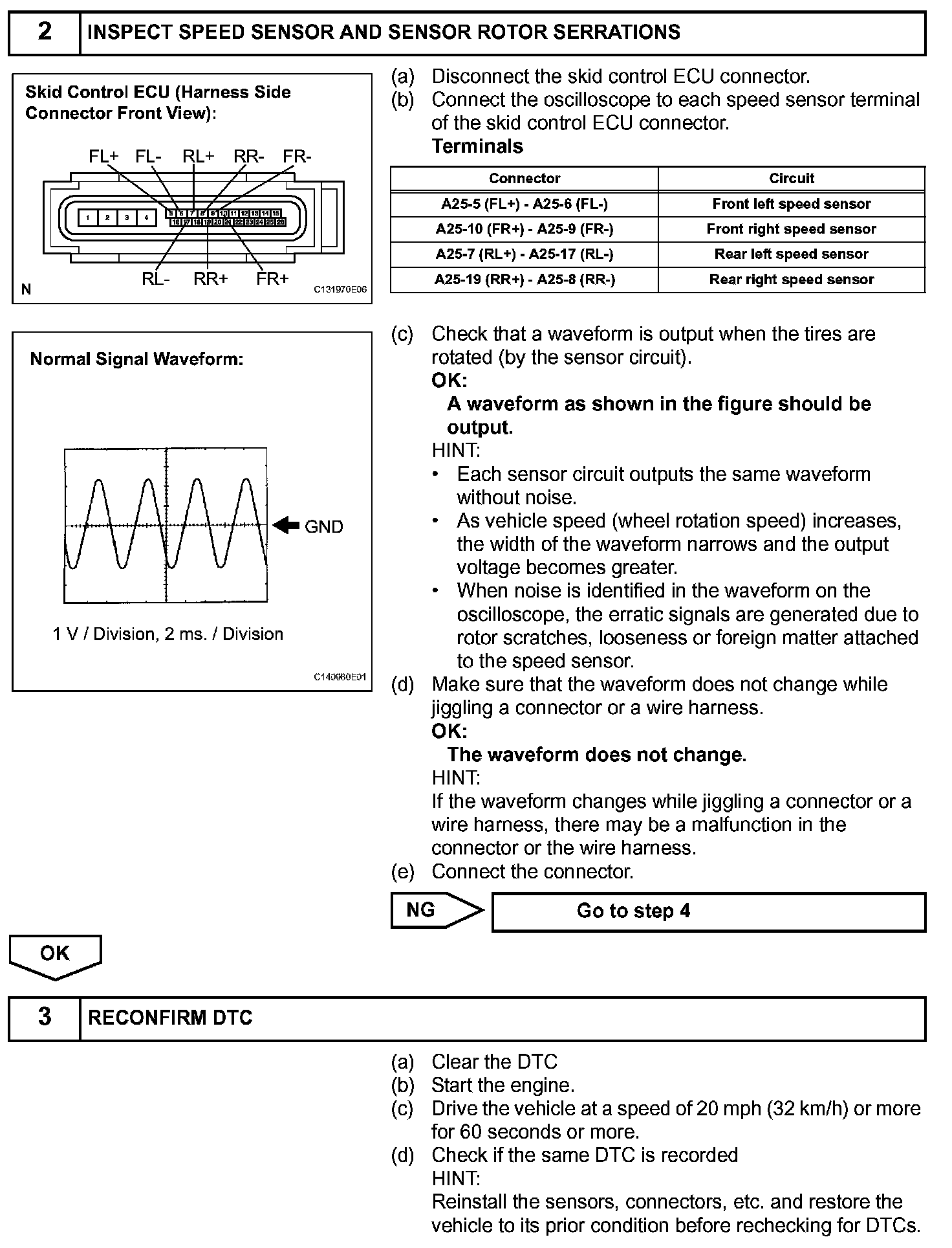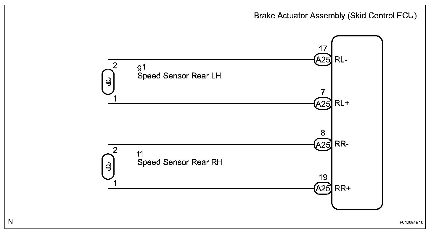 The skid control ECU measures the speed of each wheel by receiving signals from the speed sensor.