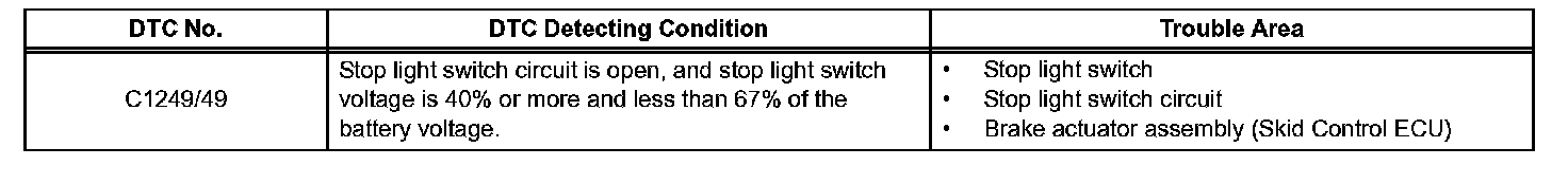 DTC C1249/49 Open in Stop Light Switch CircuitDESCRIPTION