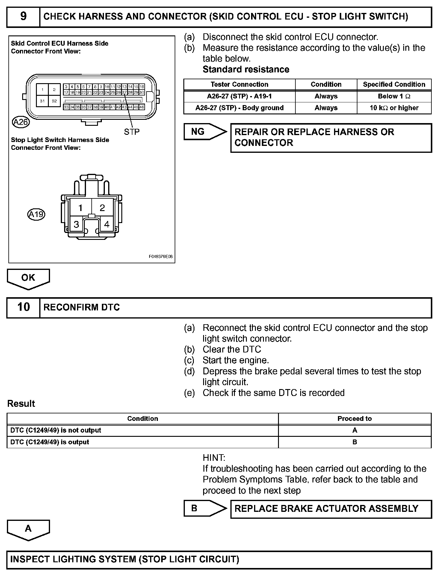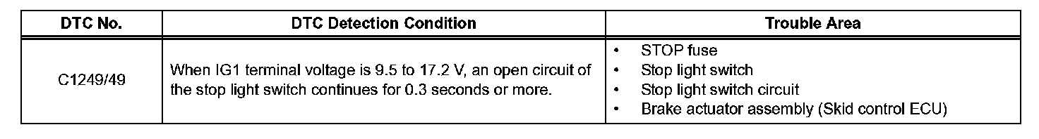 DTC C1249/49 Open in Stop Light Switch CircuitDESCRIPTION